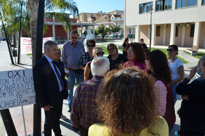 Παράσταση διαμαρτυρίας πραγματοποίησαν οι εργαζόμενοι στο πρόγραμμα Βοήθεια στο Σπίτι το πρωί της Παρασκευής 21 Οκτωβρίου έξω από το Διοικητήριο της Αντιπεριφέρειας Κεφαλονιάς και Ιθάκης.