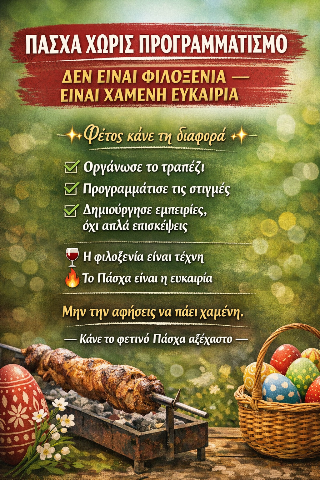 Πάσχα χωρίς προγραμματισμό δεν είναι φιλοξενία, είναι χαμένη ευκαιρία