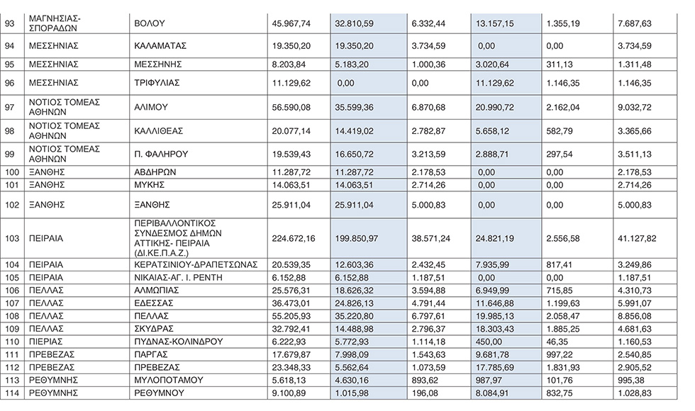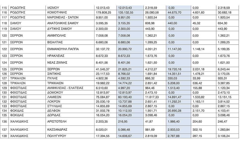 Το ύψος του ποσοστού χρηματοδότησης του συνολικού ποσού των εγκεκριμένων επιλέξιμων δαπανών ανά κατηγορία δράσεων αναλύεται ως εξής: