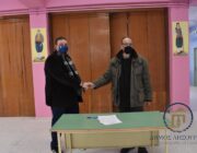 Ο Προϊστάμενος της Διεύθυνσης Κατασκευών των ΚΤΥΠ ΑΕ κ.Τσαγκάρης και οι επιβλέποντες μηχανικοί του έργου κ.Αγελαδάς και Στραβοδήμος , ο εργολάβος του έργου κ.Παρμάγκος και ο Δήμαρχος κ.Κατσιβέλης υπέγραψαν το πρωτόκολλο διοικητικής παραλαβής και πλέον απομένουν μόνο κάποιες μικροεργασίες στο κομμάτι του εξοπλισμού και στην καθαριότητα προκειμένου να γίνει η μεταφορά του σχολείου από τα προκάτ κάτι που εάν ο καιρός το επιτρέψει θα πραγματοποιηθεί το επόμενο δεκαήμερο.