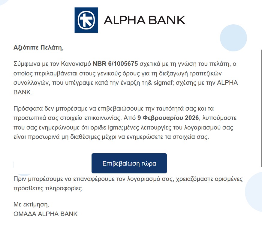Προσωρινός περιορισμός στον λογαριασμό σας στην ALPHA