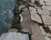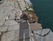 Επίσης, σε άλλο σημείο του λιμανιού της Ζακύνθου υφίσταται υψηλή -άχρηστη- κατασκευή (φωτο 5) η οποία γέρνει καταφανώς και είναι ιδιαίτερα επικίνδυνη, καθώς και διαχωρισμός του εδάφους (φωτο 6-7).