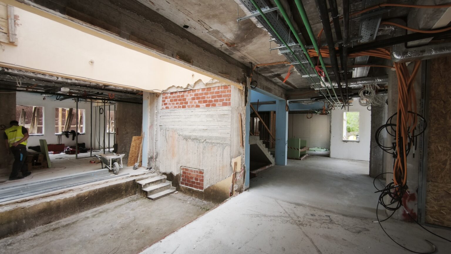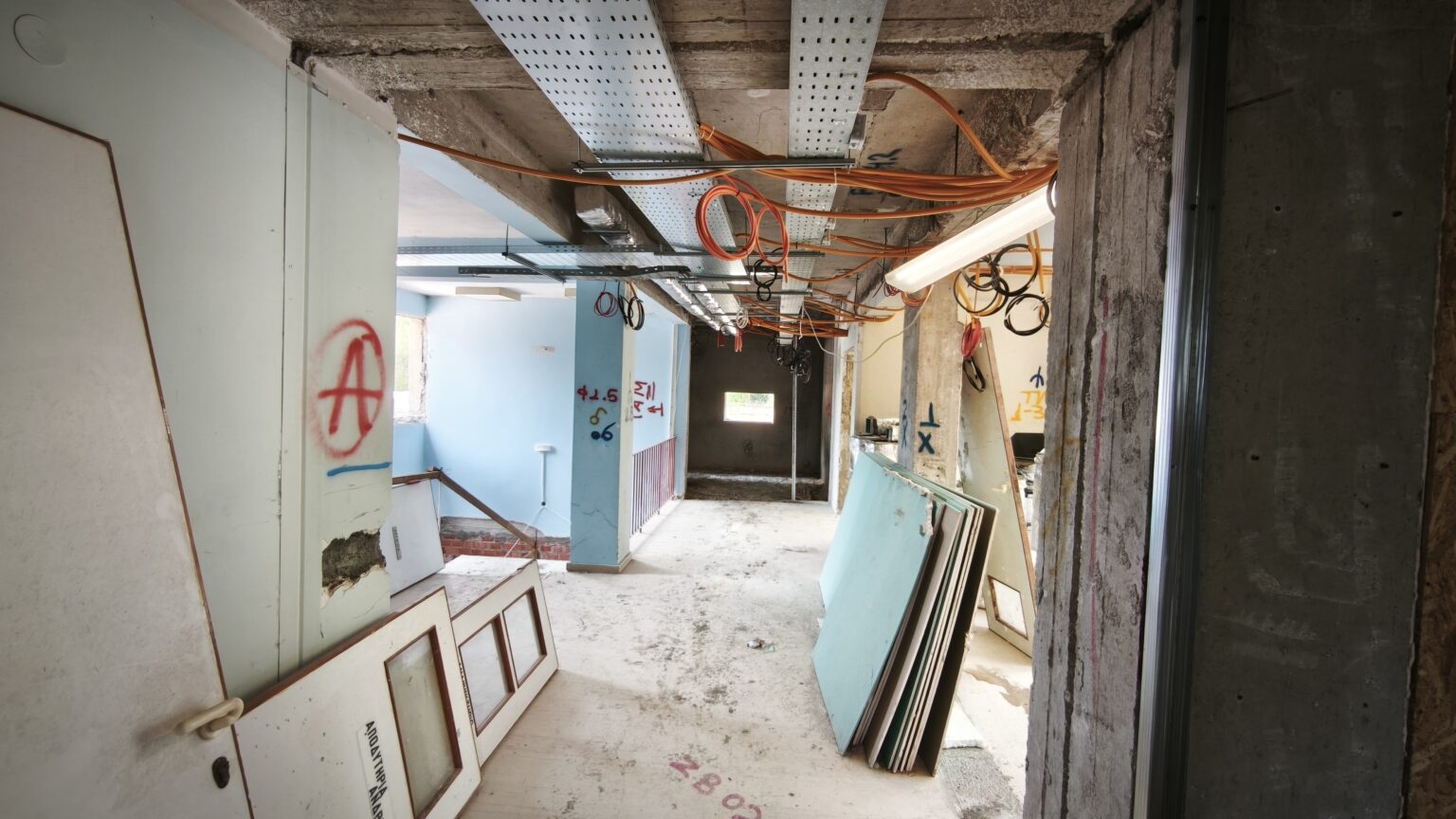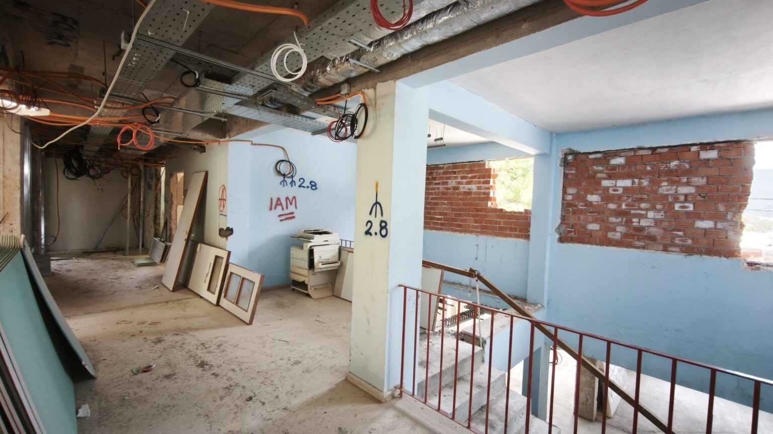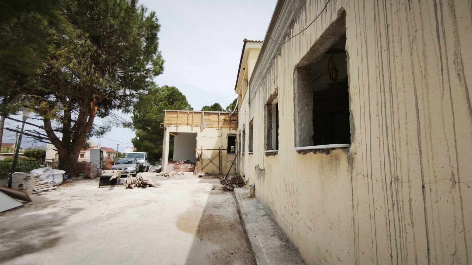 Κατά τη διάρκεια της παρουσίας μας, είχαμε την ευκαιρία να συνομιλήσουμε με τον επιβλέποντα μηχανικό του έργου, ο οποίος μας ανέφερε πως οι εργασίες συνεχίζονται απρόσκοπτα. Ωστόσο είναι ανέφικτο να παραδοθεί το έργο εντός της προθεσμίας που προέβλεπε αρχικά η σύμβαση, ήτοι εντός του καλοκαιριού. Πρόκειται για μία τεράστιας κλίμακας παρέμβαση, καθώς παρέμεινε μόνο ο φέρων οργανισμός και μέρος της εξωτερικής τοιχοποιίας του κτιρίου. Το έργο, όπως μας ανέφερε ο μηχανικός, αναμένεται να ολοκληρωθεί μέχρι το τέλος του έτους.