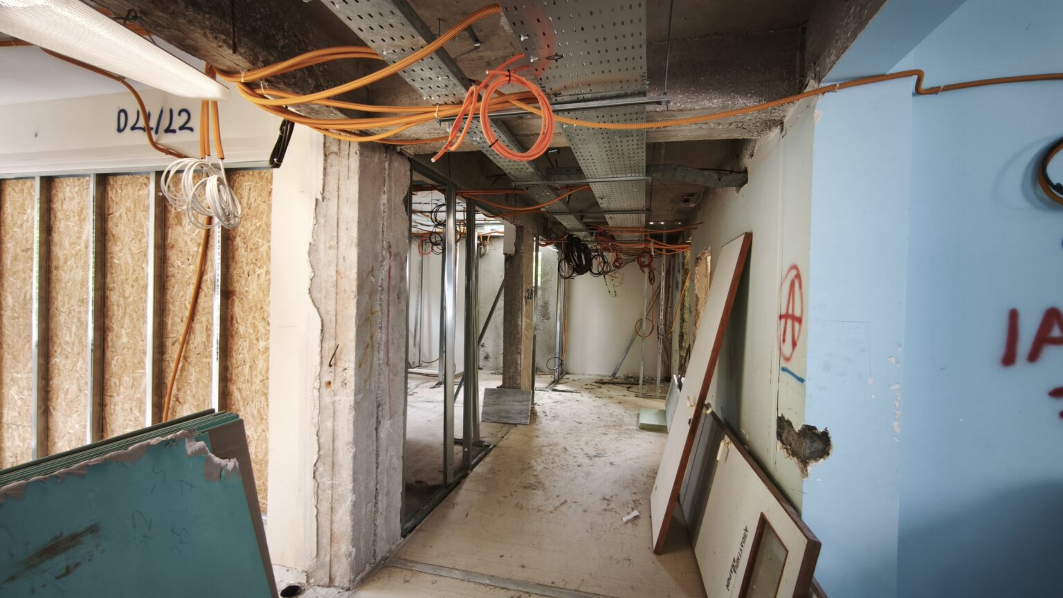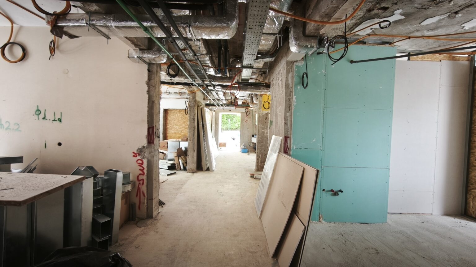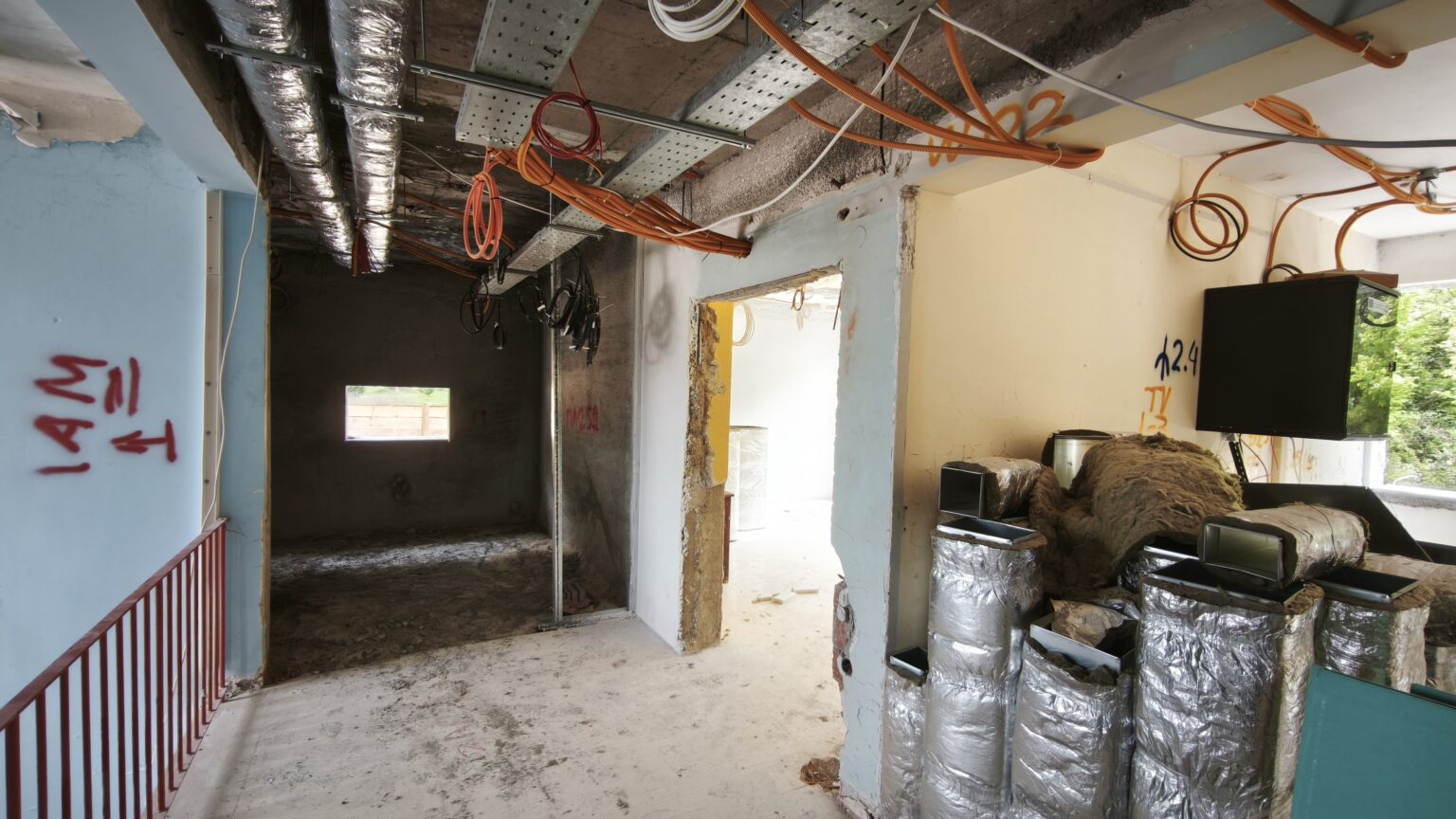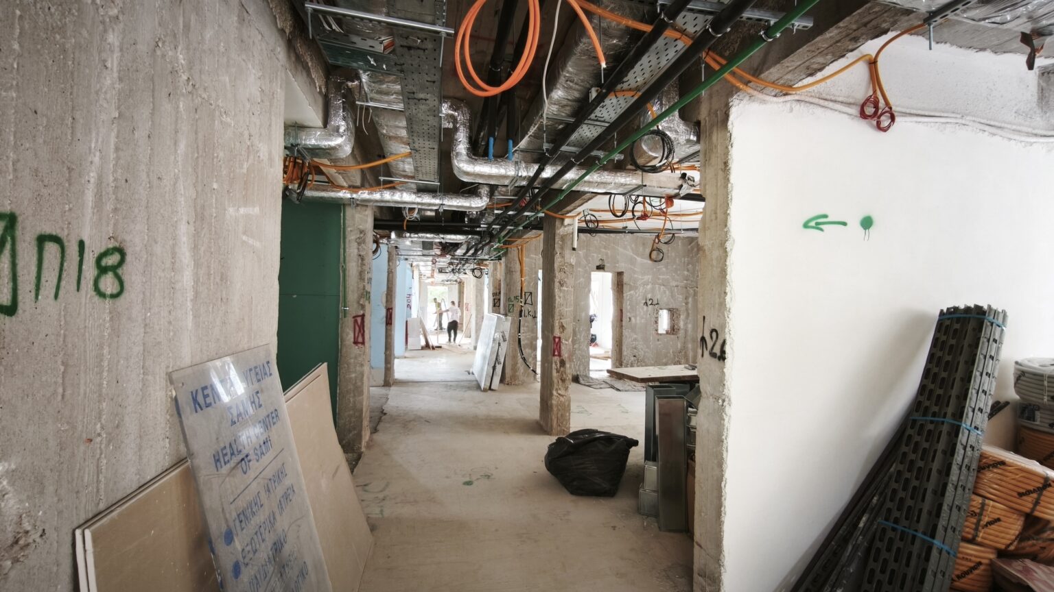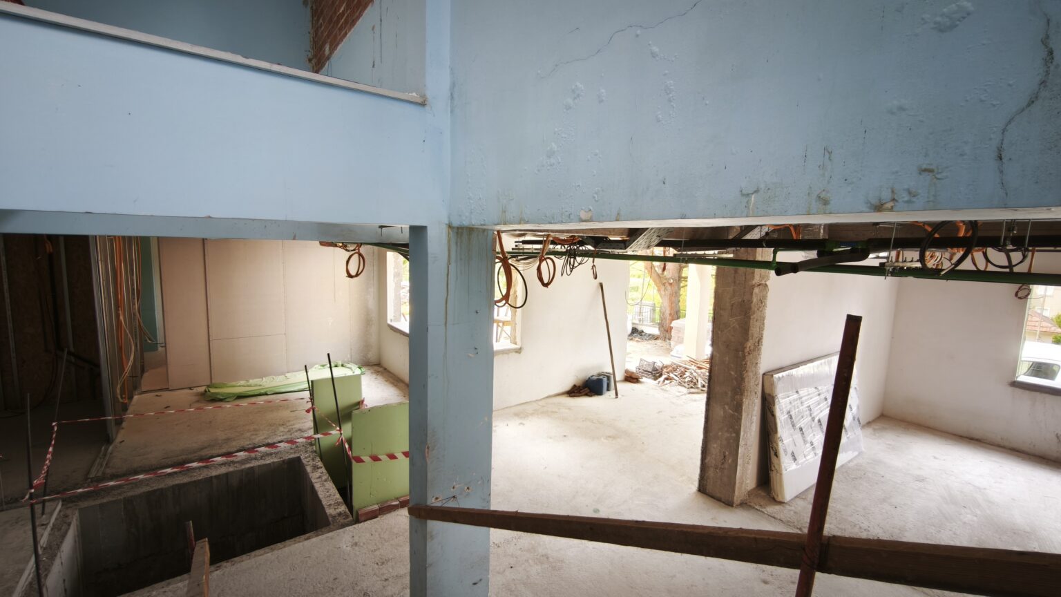 Κατά τη διάρκεια της παρουσίας μας, είχαμε την ευκαιρία να συνομιλήσουμε με τον επιβλέποντα μηχανικό του έργου, ο οποίος μας ανέφερε πως οι εργασίες συνεχίζονται απρόσκοπτα. Ωστόσο είναι ανέφικτο να παραδοθεί το έργο εντός της προθεσμίας που προέβλεπε αρχικά η σύμβαση, ήτοι εντός του καλοκαιριού. Πρόκειται για μία τεράστιας κλίμακας παρέμβαση, καθώς παρέμεινε μόνο ο φέρων οργανισμός και μέρος της εξωτερικής τοιχοποιίας του κτιρίου. Το έργο, όπως μας ανέφερε ο μηχανικός, αναμένεται να ολοκληρωθεί μέχρι το τέλος του έτους.