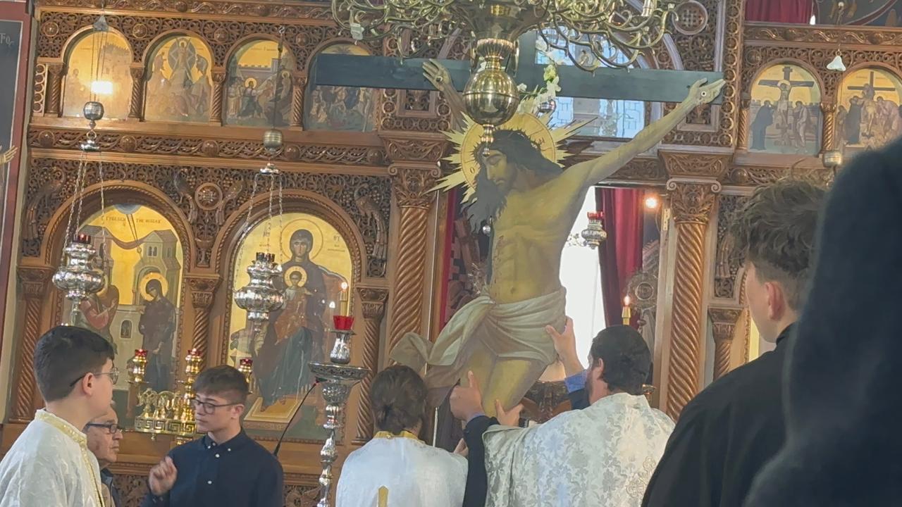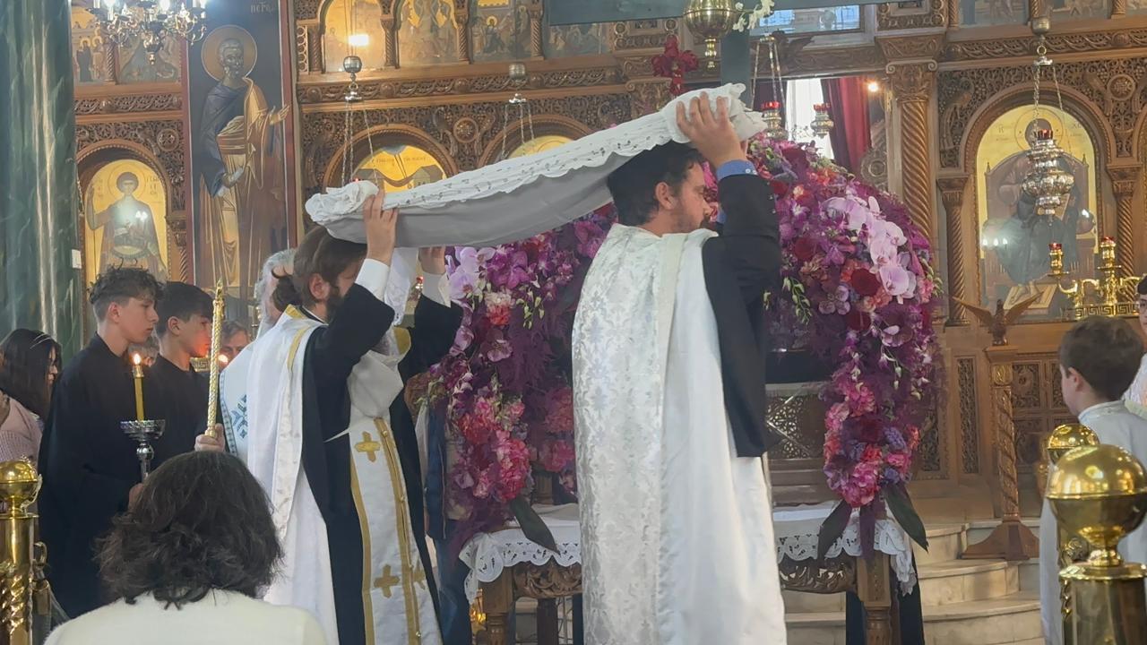 Ο ναός, για ακόμη ημέρα, ήταν κατάμεστος από ανθρώπους κάθε ηλικίας, οι οποίοι ήθελαν να βιώσουν την κορύφωση του Θείου Πάθους προσκυνώντας αρχικά τον Εσταυρωμένο και στη συνέχεια, μετά την αποκαθήλωση, τον λαμπρά στολισμένο Επιτάφιο εναποθέτοντας με ευλάβεια την προσευχή.
