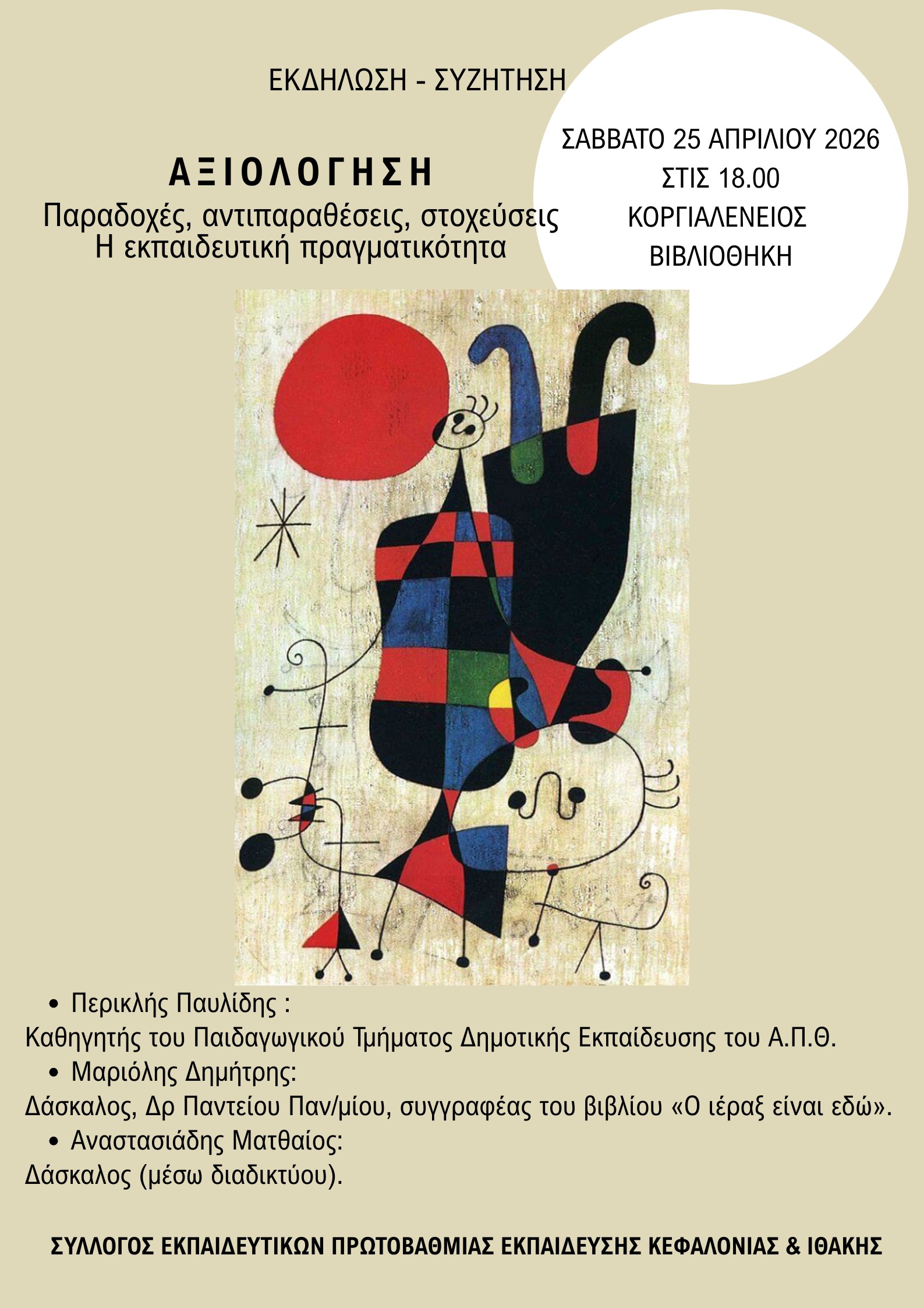 που θα πραγματοποιηθεί το Σάββατο 25 Απριλίου 2026 και ώρα 18:00 στην Κοργιαλένειο Βιβλιοθήκη Αργοστολίου. Στην εκδήλωση θα παρευρεθούν και θα μιλήσουν: