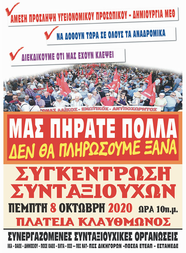 «Την επιδείνωση της πανδημίας στο χώρο της υγείας, την τροπολογία της κυβέρνησης να αποδώσει εφάπαξ αναδρομικά 11 μηνών και αυτά μόνο στις Κύριες συντάξεις αποκλείοντας 1,3 εκατομ. Συνταξιούχους. Οι εξελίξεις στην Ανατολική μεσόγειο».