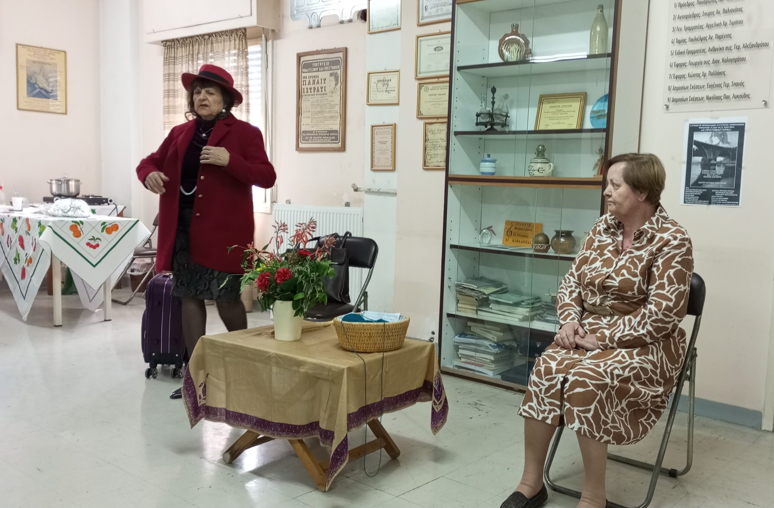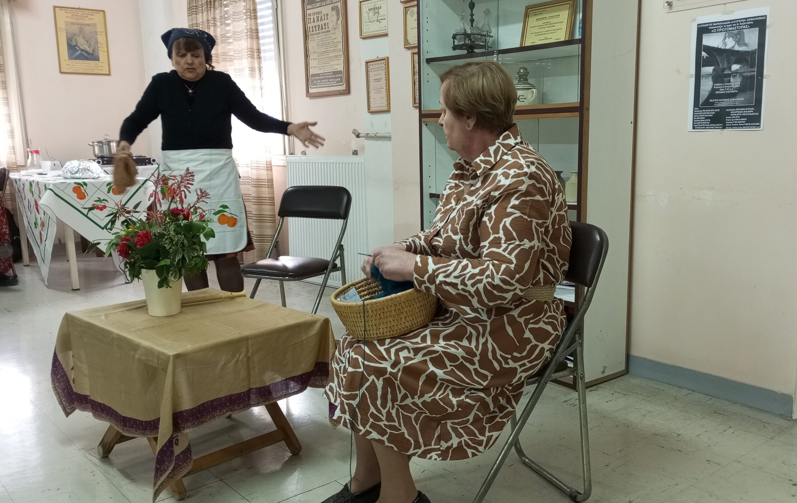Στη συνέχεια μέλη της θεατρικής ομάδας του συλλόγου μας με επικεφαλής τη θεατρική συγγραφέα και ηθοποιό κ. Πέντζη Διονυσοπούλου παρουσίασαν το θεατρικό έργο της «ΤΟ ΣΑΡΑΚΙ ΤΗΣ ΔΡΟΣΟΥΛΑΣ»  που καθήλωσε τους θεατές και σκόρπισε άφθονο γέλιο με τα «καμώματα και παθήματα» της Μέλπως (την υποδύθηκε η κ. Πέντζη) και της  Δροσούλας (την υποδύθηκε η κ. Φωτεινή Κουμπούνη).