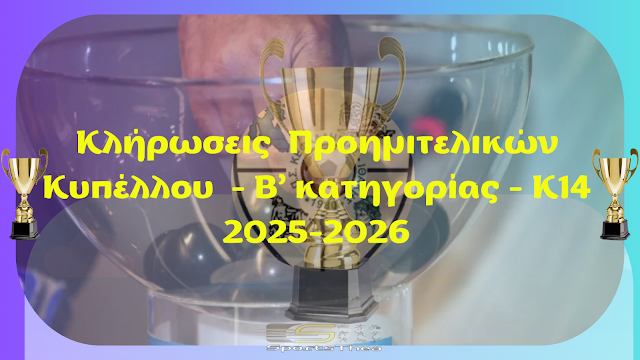 Την Δευτέρα 29/12 οι κληρώσεις κυπέλλου – Β’ κατηγορίας και Κ-14