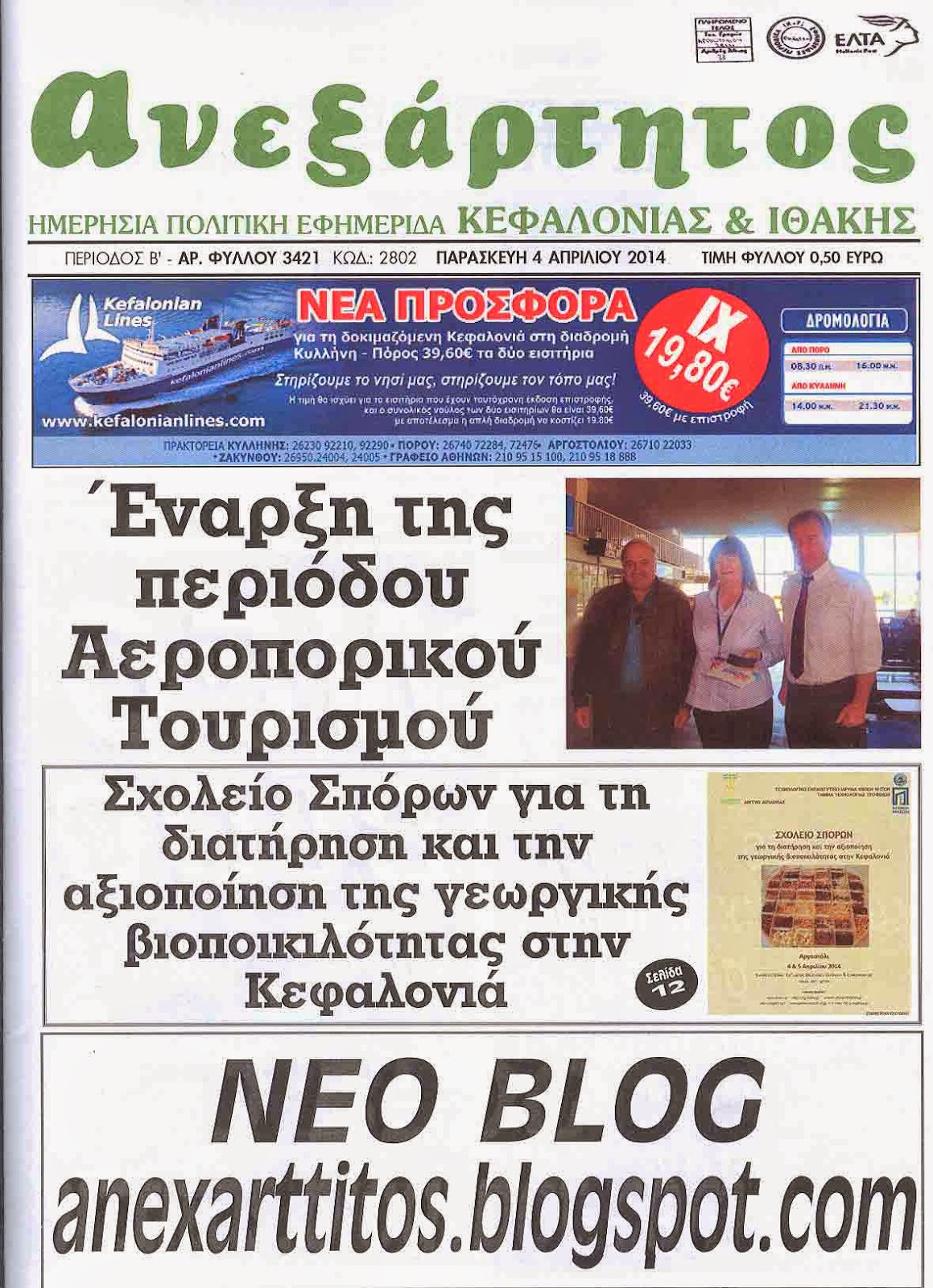 TO ΣΗΜΕΡΙΝΟ ΠΡΩΤΟΣΕΛΙΔΟ ΤΟΥ “ΑΝΕΞΑΡΤΗΤΟΥ”