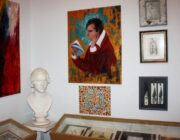 Στην επετειακή εικαστική έκθεση-αφιέρωμα στα 200 Χρόνια από το θάνατο του (1824-2024) που επιμελήθηκα στη Σύγχρονη Πινακοθήκη Villa Ροδόπη, στην Αίθουσα «Byron’s Room» παρουσιάστηκαν εικαστικά έργα εμπνευσμένα από την ποίηση του, αντίγραφα προτομών του, γλυπτικές συνθέσεις και ζωγραφικά σχέδια με την εξιδανικευμένη εκφραστικά μορφή του, λιθογραφίες, εκδόσεις τέχνης και φιλελληνικά αντικείμενα. Η προσωπική μου εντρύφηση στην γοητευτική προσωπικότητα και το έργο του ξεκίνησε από την παιδική μου ηλικία στην Λακήθρα της Κεφαλονιάς όπου επισκεπτόμουν συχνά την τοποθεσία «Ο Βράχος του Βύρωνα», σημείο όπου ο ποιητής κατά την παραμονή του στην Κεφαλονιά, κατοχική κτήση με όλα τα άλλα Ιόνια νησιά της Μεγάλης Βρετανίας τότε, (Αύγουστος 1823- Ιανουάριος 1824) όταν διέμενε σε οικία των Μεταξάτων, πήγαινε συχνά και στοχαζόταν. Σε μια μαρμάρινη αναμνηστική πλάκα πάνω στον υπάρχοντα βράχο έχει αναγραφεί η αποδιδόμενη σε αυτόν ρήση : «Αν είμαι ποιητής το οφείλω εις τον αέρα της Ελλάδος».