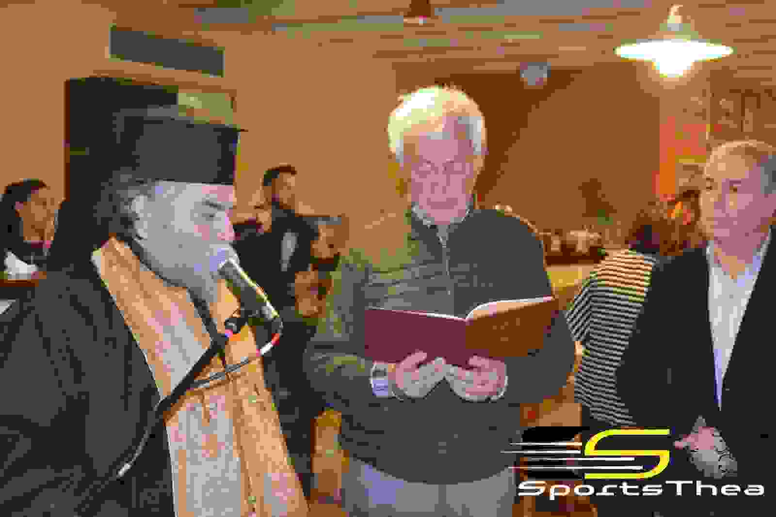 Στο σύντομο χαιρετισμό του ο Κώστας Βαρτελάτος αφού καλωσόρισε και ευχαρίστησε τους παρευρισκομένους για την παρουσία τους, έκανε έναν σύντομο απολογισμό των αγωνιστικών δράσεων του Συλλόγου την χρονιά που έφυγε, ζητώντας τους παράλληλα να είναι κοντά στην ομάδα, ενώ δεν παρέλειψε να αναφερθεί στην απαράδεκτη κατάσταση των γηπέδων μας, αλλά και την εγκατάλειψη του γηπέδου του χωριού από την πολιτεία.