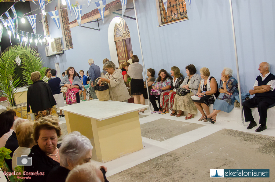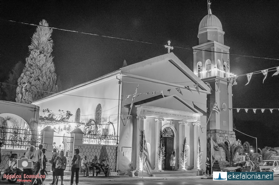 Τα πυροτεχνήματα τα τοποθετούσαν στον λοφίσκο απέναντι από την εκκλησία ή στο απέναντι πλάτωμα για να φαίνονται στα γύρω χωριά και στο Αργοστόλι. Τα παράγγελνα ιδιαιτέρως στην Ζάκυνθο. Πολλές φορές οι επίτροποι διαφωνούσαν για την ώρα που έπρεπε «να πέσουν οι ροδέλες», έτσι ονομάτιζαν τα πυροτεχνήματα. και ο λόγος ήταν, γιατί ο καθένας είχε και διαφορετική άποψη. Κάποιοι που έδειχναν πιο αλέγροι και γλεντζέδες προτιμούσαν να καούν τα πυροτεχνήματα κατά την ολονυχτία, όταν το κέφι, ευθυμία και το γλεντοκόπι είχαν κορυφωθεί.