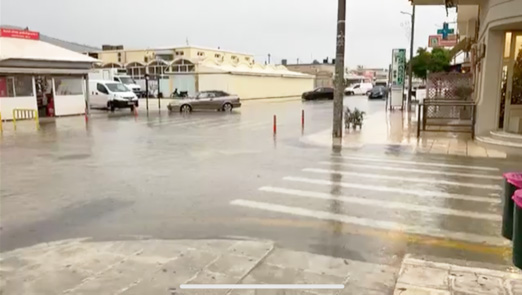 Επίσης …λίμνη δημιουργήθηκε πάλι από τις βροχοπτώσεις στο δρόμο έξω από το Κτίριο του Μπαστουνιού στο Μέτελα, όπου το έργο έχει μόνιμο πρόβλημα και χρειάζεται αποκατάσταση.